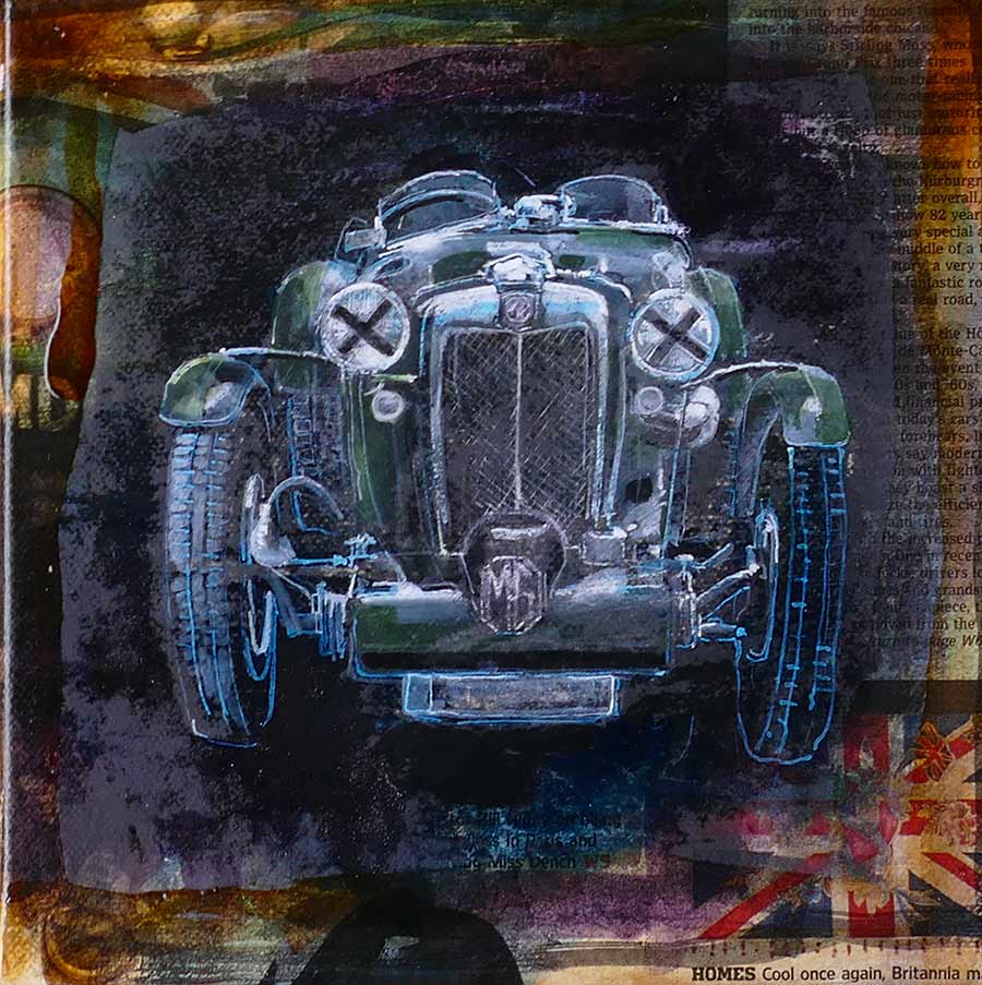 Jörg Extra malt und zeichnet Oldtimer und Youngtimer in einer eigens entwickelten Mischtechnik auf collagierter Leinwand. Auf einer speziell präparierten Leinwand werden Zeitungsexemplare der New York Times, der Washington Post oder des Figaro etc. aufgetragen und mit verschiedenen Techniken übermalt. Jedes Werk ist ein Unikat.