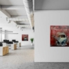 Jörg Extra malt und zeichnet Oldtimer und Youngtimer in einer eigens entwickelten Mischtechnik auf collagierter Leinwand. Auf einer speziell präparierten Leinwand werden Zeitungsexemplare der New York Times, der Washington Post oder des Figaro etc. aufgetragen und mit verschiedenen Techniken übermalt. Jedes Werk ist ein Unikat.